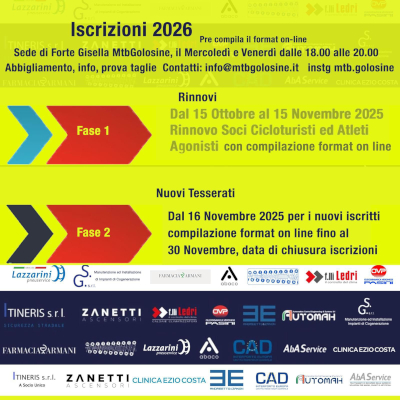 BACHECA MTB GOLOSINE - ISCRIZIONI 2026